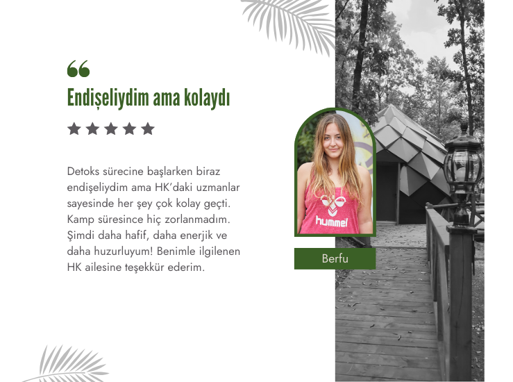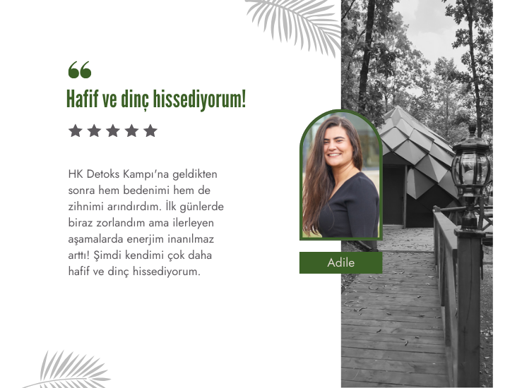 Üyelerimizin gerçek deneyimleriyle HK Detoks Kampı’nda bedenlerini ve zihinlerini nasıl arındırdıklarına tanık olun. Hafiflik, enerji ve tazelenmiş bir ruh hali burada sizi bekliyor!